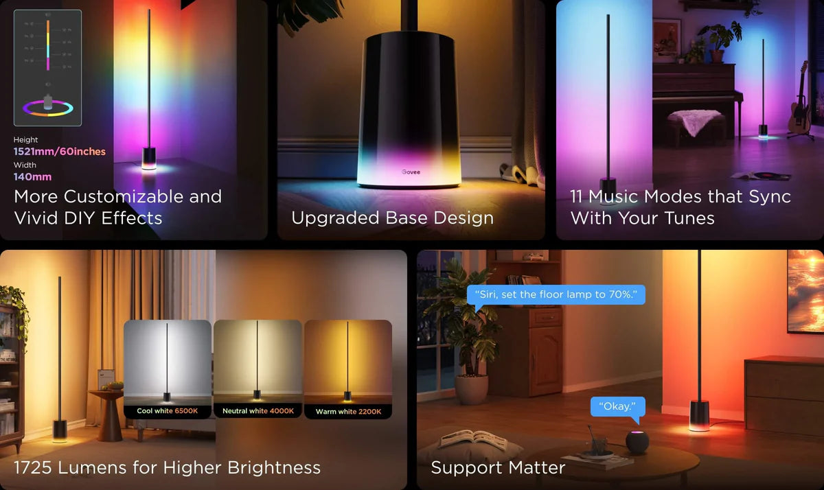 Upgrade your space with the Govee RGBICWW Smart Floor Lamp, featuring vibrant lighting, smart control, and a sleek 60-inch design for immersive ambiance.