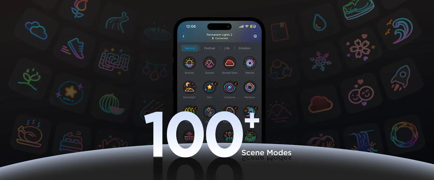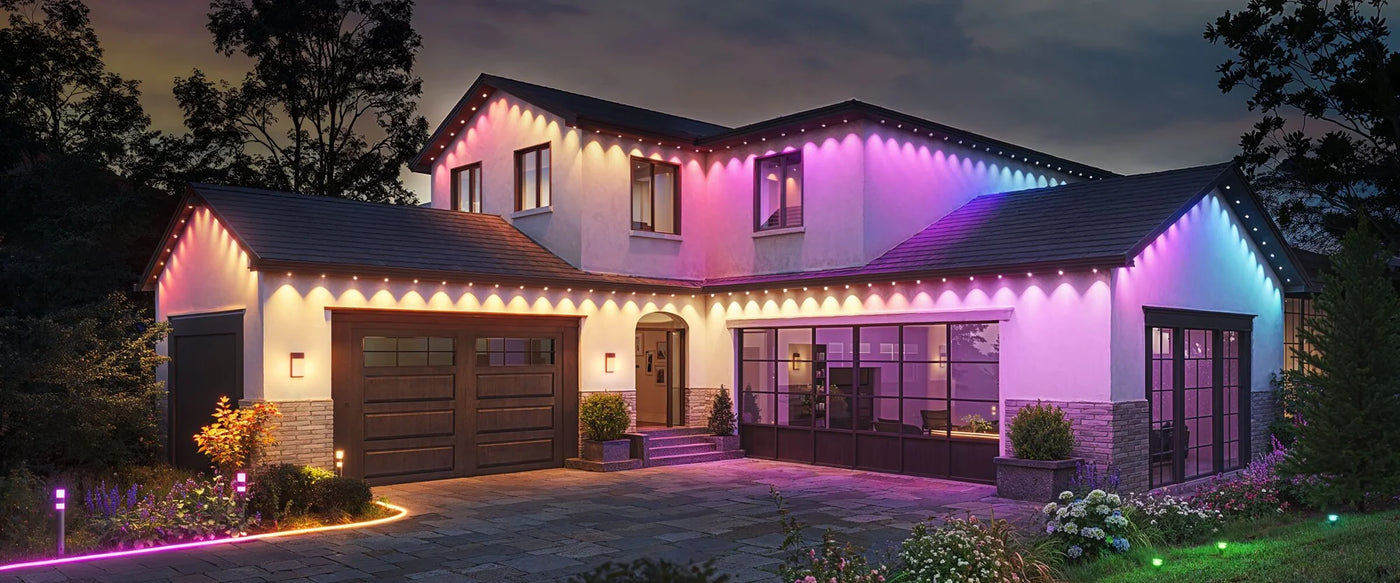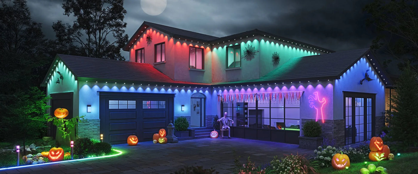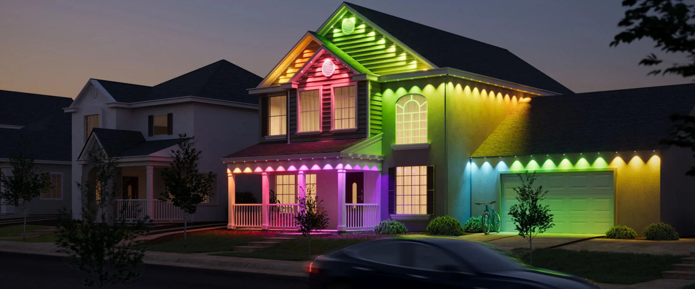Govee Permanent Outdoor Lights 2 is perfect for multiple occasions, from cozy Valentine's Day evenings, vibrant Christmas celebrations to spooky Halloween nights. With 100 scene modes and 16 million colors, these lights build a captivating and unique outdoor for you. It also shines your home with its powerful 40-lumen white light.