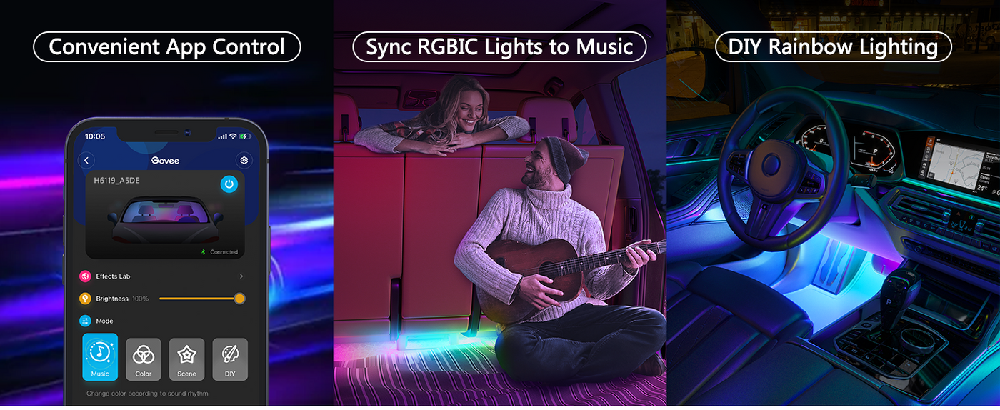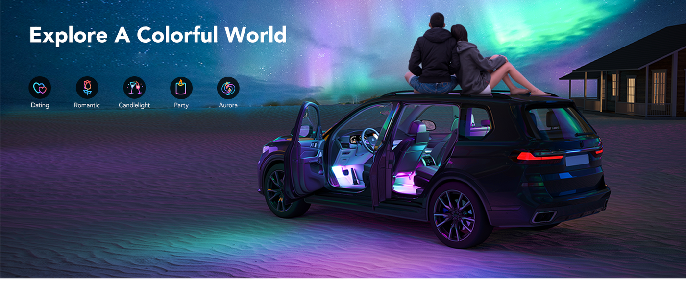- 4 Music Modes: Built-in mic syncs lighting effects to the beat, energizing road trips and commutes with dynamic rhythms.