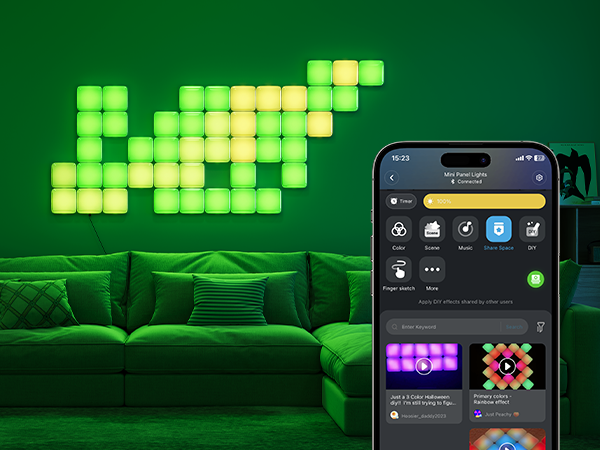 Explore community-created lighting effects or build your own with Shape Space: six panels, endless possibilities.
