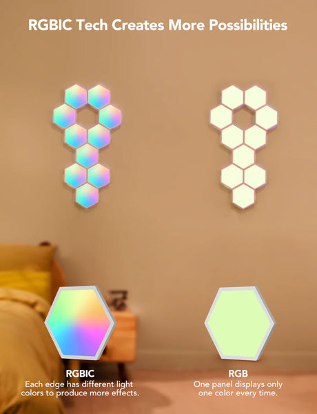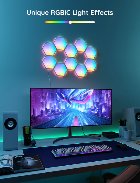 Govee Glide Hexa Light Panels (10PCS) - Smart RGBIC LED Panels for Gaming & Ambiance