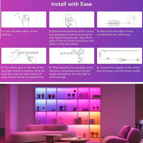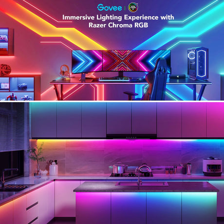 Govee brings you a versatile range of LED tape lighting, including RGBIC light strips, neon light strips, and controlled LED strip lights. With music syncing and color-changing options, our LED strip lights offer endless possibilities. Illuminate, decorate and create an immersive experience with Govee LED strip lighting today.