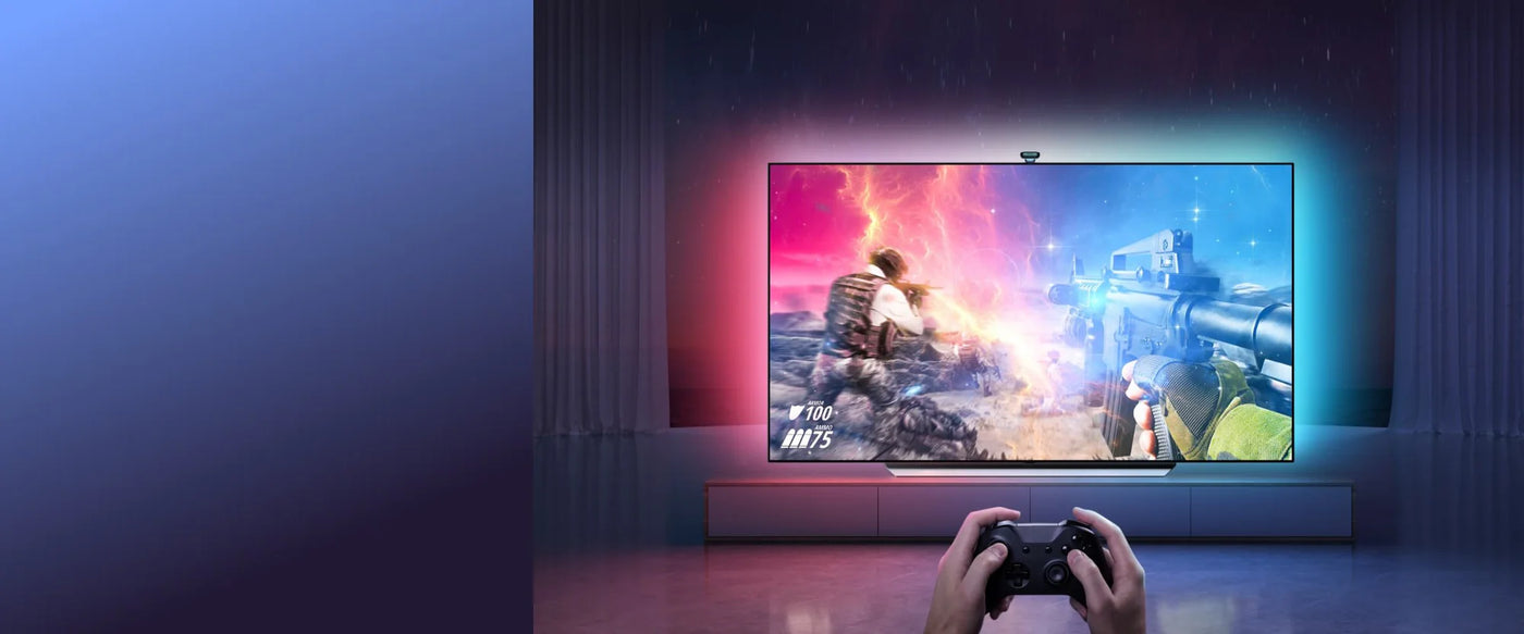 Our innovative technology enhances the colors on your screen, creating dynamic lighting effects that extend beyond the screen and transforming your room into a captivating and immersive environment.