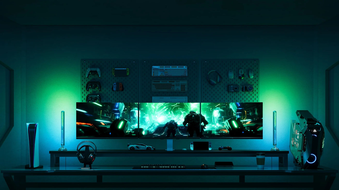 The Govee Gaming Light Bars Pro enhance your setup with vibrant RGBIC lighting that syncs to your screen in real time. Designed for 24–32 inch monitors, the triple-sided bars deliver 16 million colors, 60+ modes, and smart compatibility with Matter, Alexa, Google, Razer, and Corsair—creating a cyberpunk-inspired atmosphere for gaming, movies, and music.
