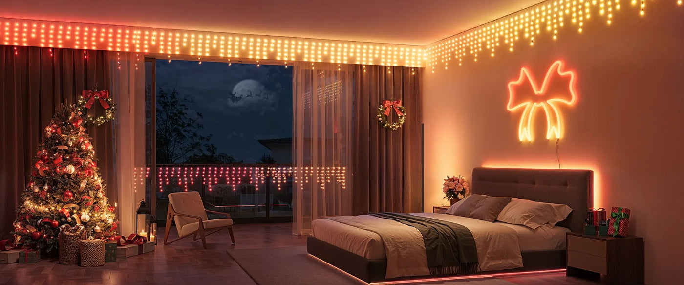 Govee Icicle Lights feature independent chips for each lamp, with 16 million colors to choose from for richer lighting effects. Explore more with the lighting bot for more DIY fun.